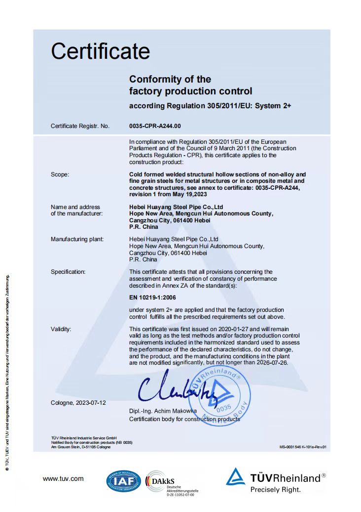 河北華洋鋼管有限公司公司創建于2005年,注冊資金5億元,公司占地面積1000余畝,固定資產12億元,年銷售收入近100億元,現有員工600余人?!叭A洋牌"高頻直焊鋼管被評為“河北省名牌產品”,年生產能力可達260萬噸,2024年河北華洋鋼管有限公司榮獲河北省百強民營企業(69位),河北省百強制造業(57位)榮譽稱號。